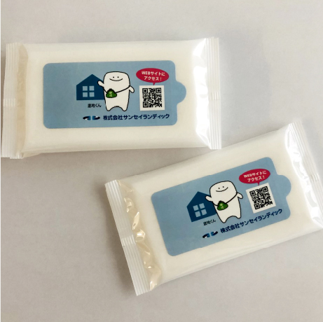 日頃お世話になっているお客様やお取引先様に、感謝のしるしとして配っているノベルティグッズの一例だよ。毎年違うグッズを社員のみんなで考えているんだ。ぼくのグッズをみんなに使ってもらえることが喜びだよ。毎年楽しみにしてもらえるとうれしいな。